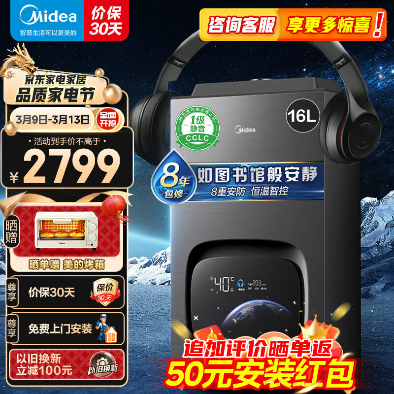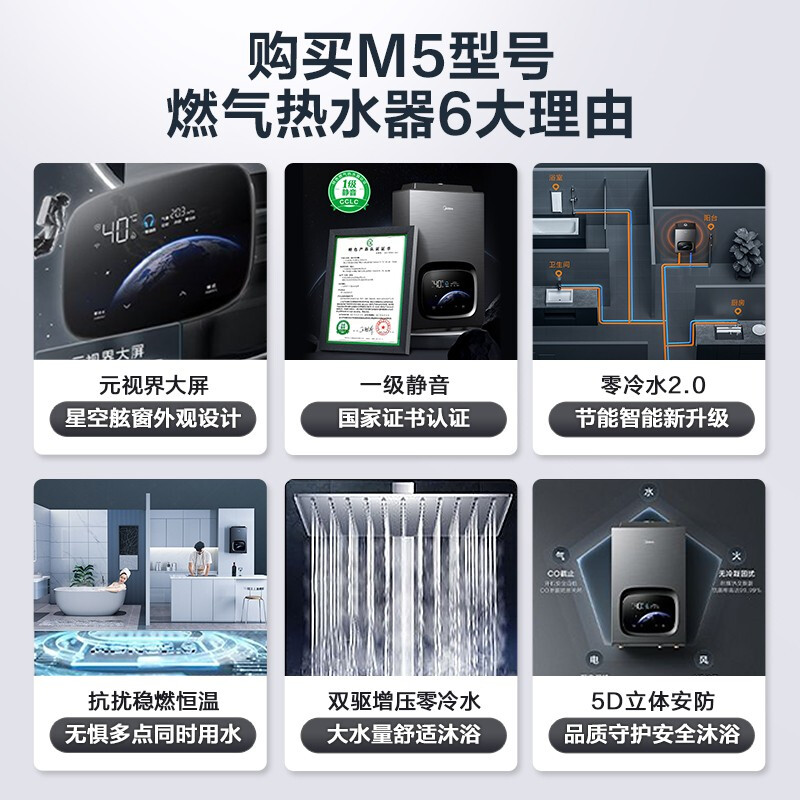 美的(Midea)燃气热水器零冷水恒温抗风防冻天然气16升星空大屏远程智能操控黑曜石JSQ30-M5价格:2799.00元!