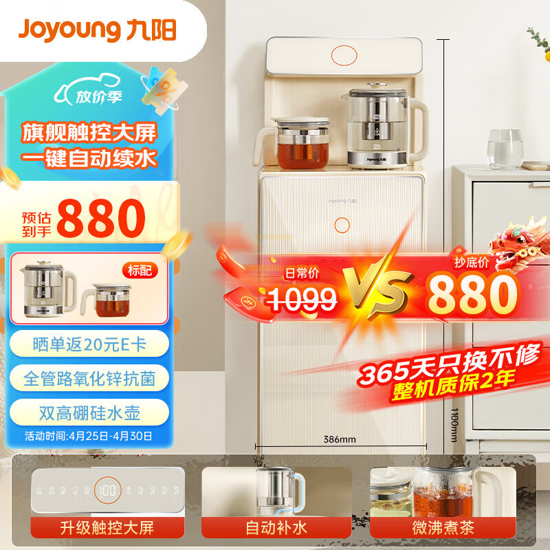 九阳(Joyoung)茶吧机家用饮水机一键全自动下进水触控大屏多功能遥控立式下置水桶中大型柜体温热型 JYW-WH600价格:880.00元!
