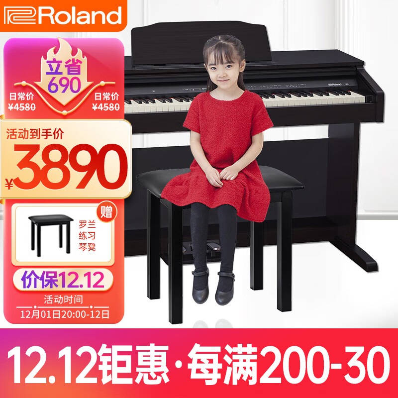 罗兰(Roland)电钢琴RP30智能带盖88键重锤立式数码钢琴黑棕色+原装琴凳价格:4550.00元!