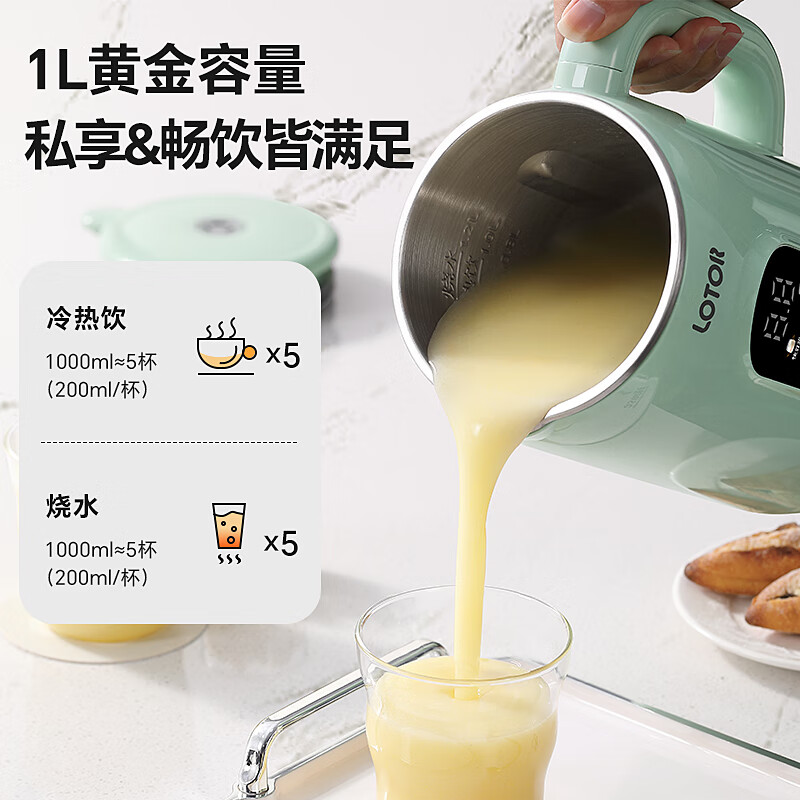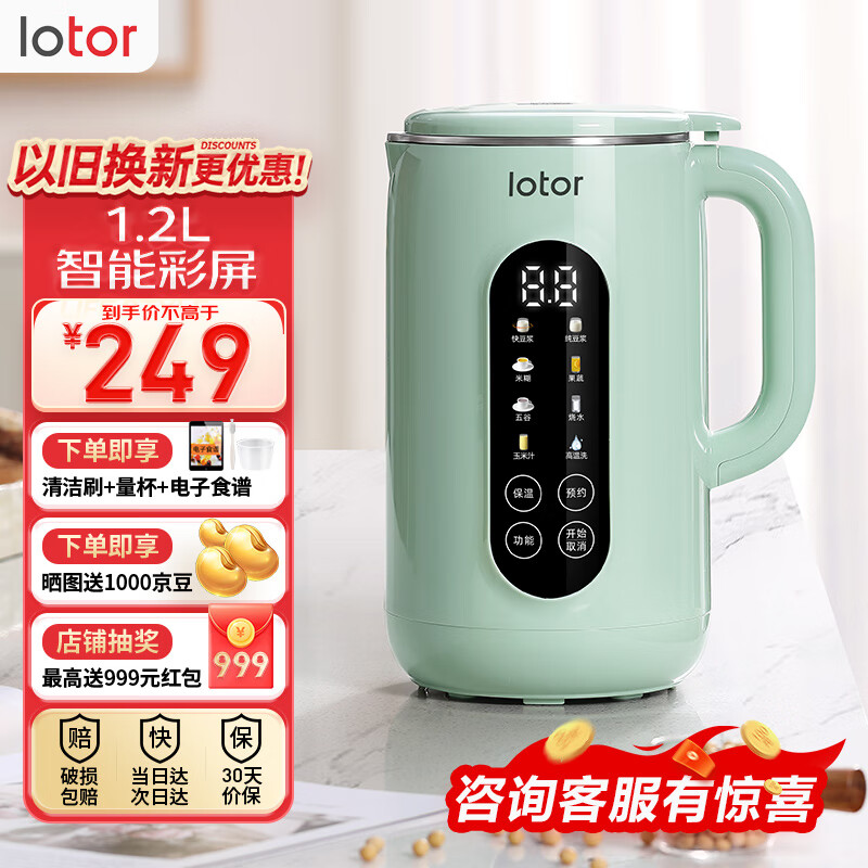 LOTOR小浣熊迷你豆浆机家用破壁机小型多功能全自动五谷杂粮免洗免滤搅拌机榨汁机辅食机DJJ-DP100 绿色价格:249.00元!