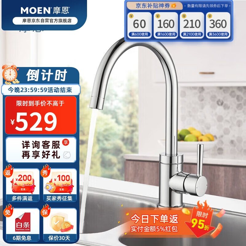 摩恩(MOEN)厨房水槽龙头 可旋转洗菜盆洗碗盆龙头 净铅单把手冷热水龙头价格:579.00元!