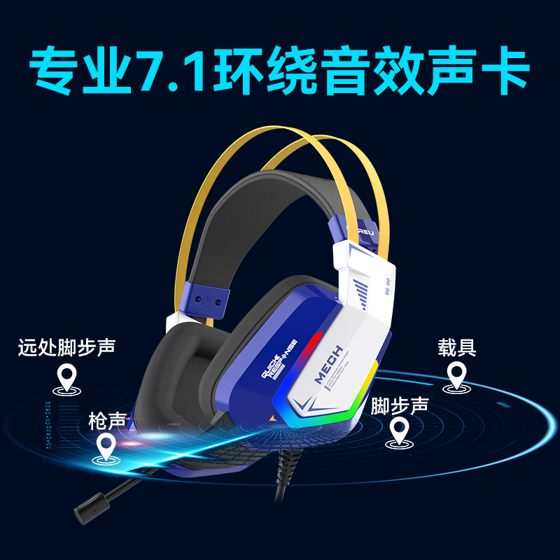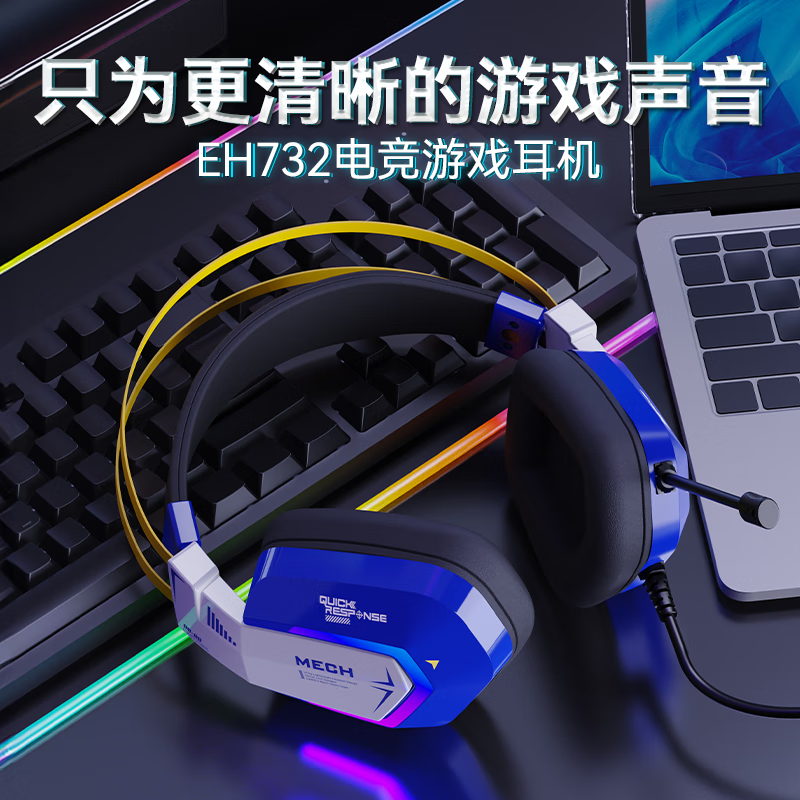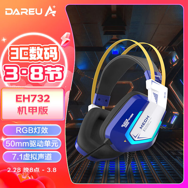 达尔优(dareu)EH732游戏电竞电脑头戴式有线耳机线控耳麦单USB接口7.1声道吃鸡耳机-机甲版价格:145.35元!