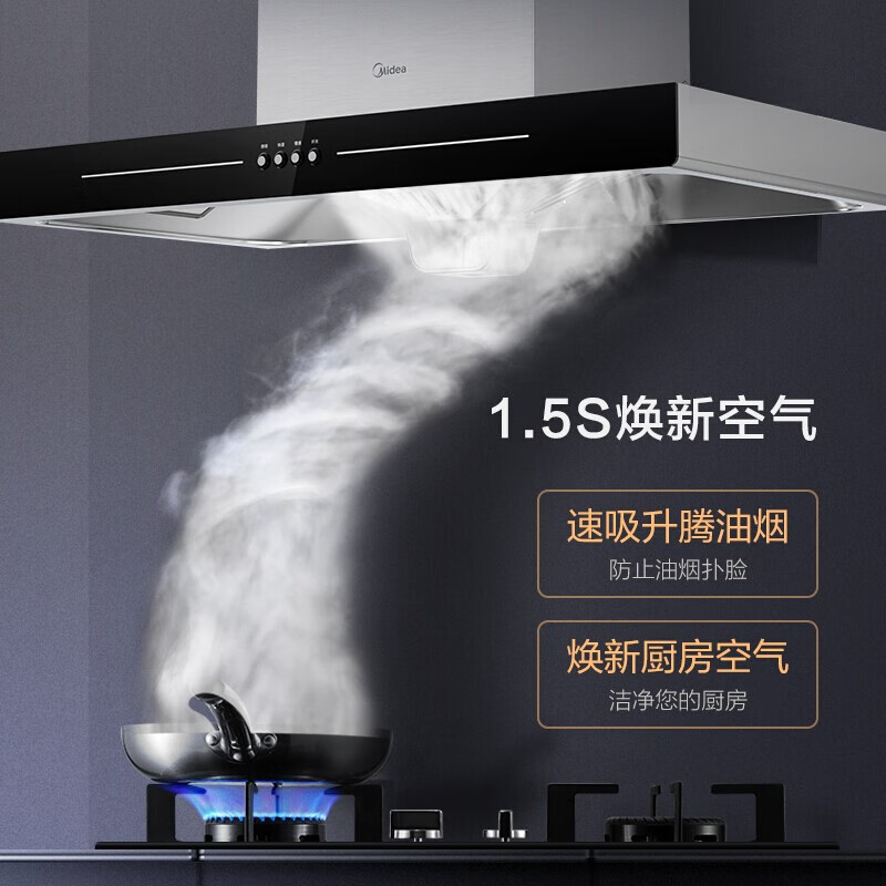 美的(Midea)家用抽油烟机燃气灶17/19立方大吸力顶吸排油烟机欧式烟灶套装厨房三件套油烟机灶具热水器 【单烟机按键T33】17立方吸力不带洗 厨房家电价格:949.00元!