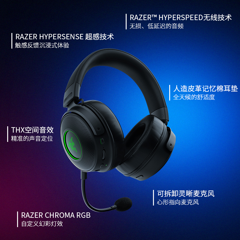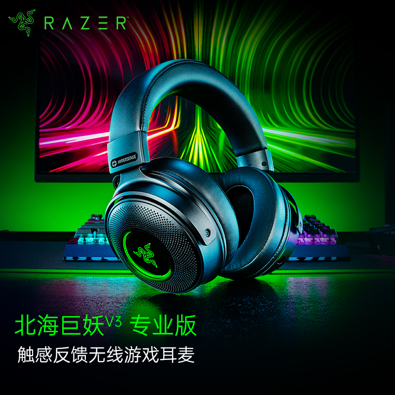 雷蛇(Razer)北海巨妖V3专业版 无线头戴式电竞游戏耳机耳麦 触感反馈 RGB灯效 吃鸡神器价格:1299.00元!