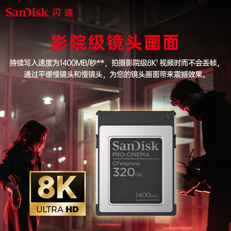 闪迪(SanDisk)320GB CFexpress Type B内存卡 影院级8K视频 读速1700MB/s 持续写速1400MB/s专业摄影存储卡价格:4999.00元!