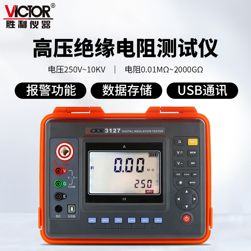 胜利仪器(VICTOR)兆欧表 高压绝缘电阻测试仪 10KV数字摇表 绝缘电阻表 VC3127价格:4136.00元!