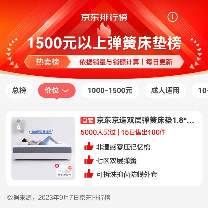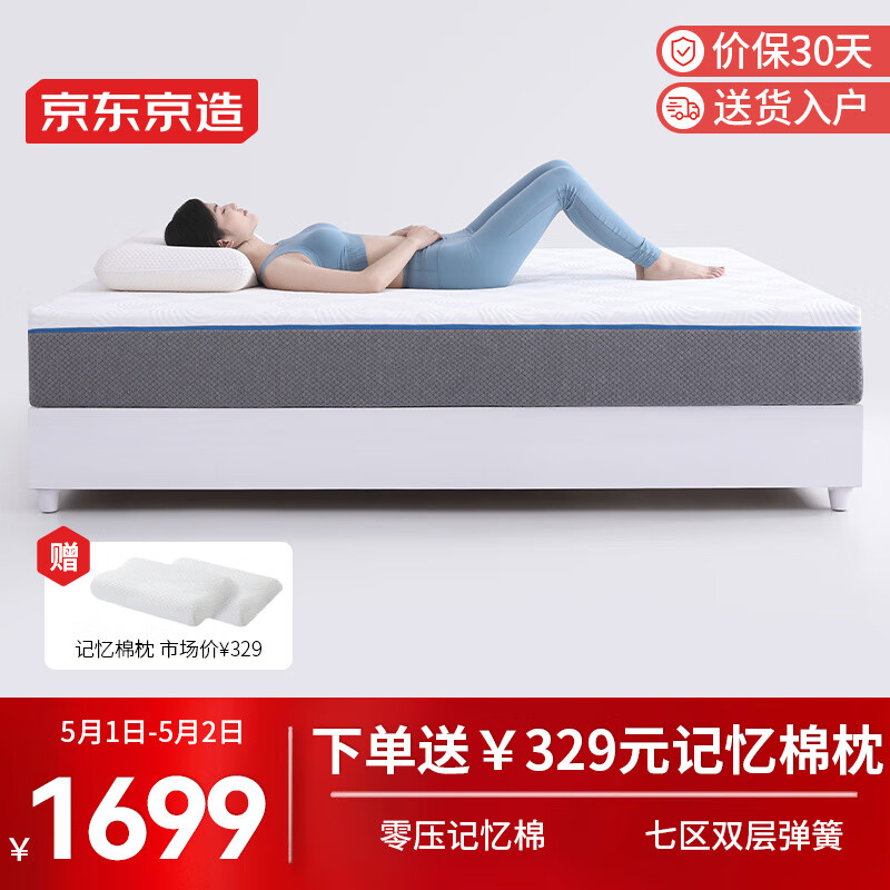 京东京造弹簧床垫 0压记忆棉|双层弹簧|软硬两用 席梦思床垫1.5×2米MS02价格:1899.00元!
