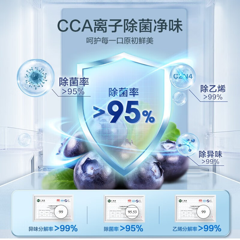 2、冰箱非常好,外观大气,颜色好看,制冷效果很好,保鲜效果也很棒,容量很大,可以放下很多东西,再也不会说东西放不下了,很满意,关键是买了有一段时间了,试用了很好