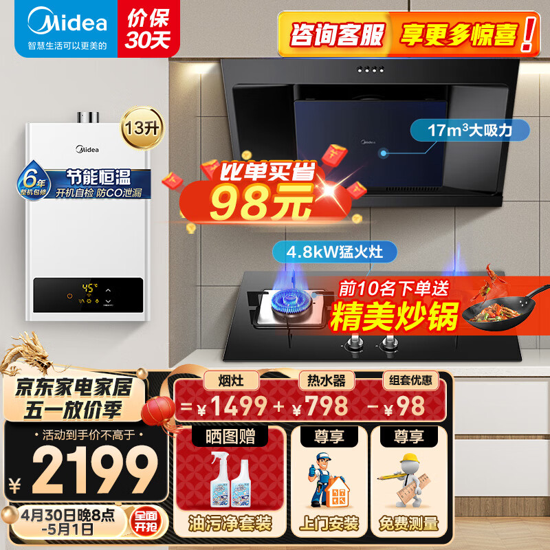 美的(Midea)侧吸抽油烟机灶具烟灶多件套装燃气热水器家用烟灶燃热厨房三件套JP11+Q217B+13HWF天然气价格:2249.00元!