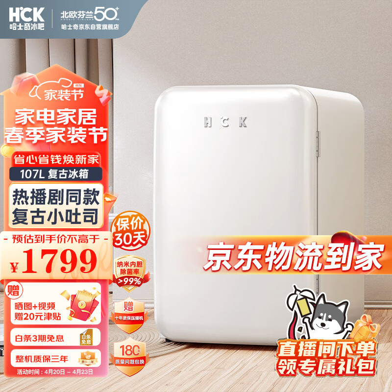哈士奇客厅冰箱家用租房小型家用单门复古冷冻冷藏节能母婴冰箱储奶 小吐司 107升BC-130RDC白色价格:1799.00元!