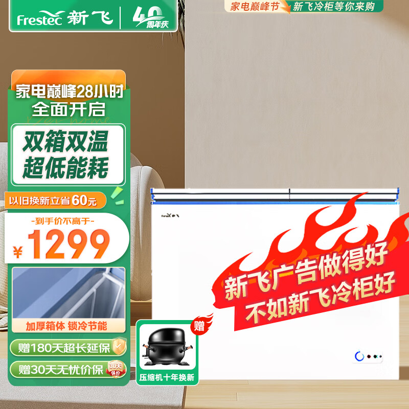 新飞(Frestec)300升商用卧式冰柜 双箱双温冷柜 大冷冻顶开门卧式冰箱BCD-300KPCT价格:1299.00元!
