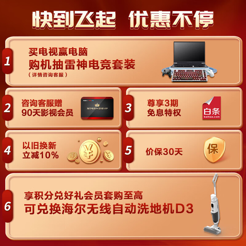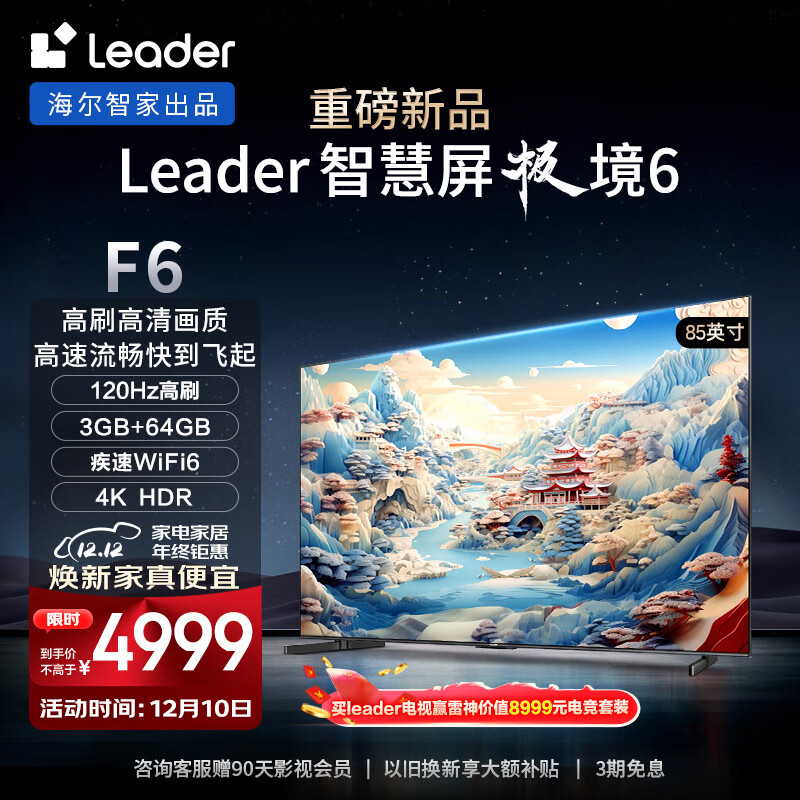 Leader海尔智家出品L85F6 85英寸小超跑智慧屏120Hz高刷游戏电视双频WiFi6护眼防蓝光3GB+64GB一键投屏价格:5299.00元!
