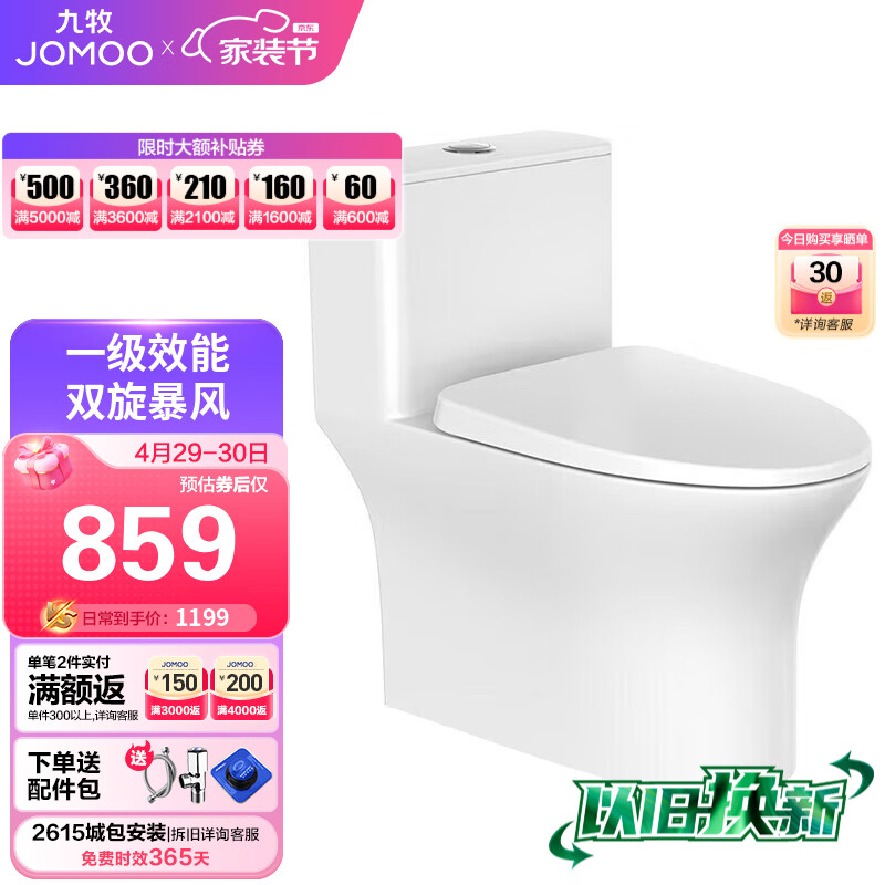 九牧(JOMOO)11396-2-1/41K-1抗菌一级水效坐便器虹吸式节水连体马桶400坑距价格:1069.00元!