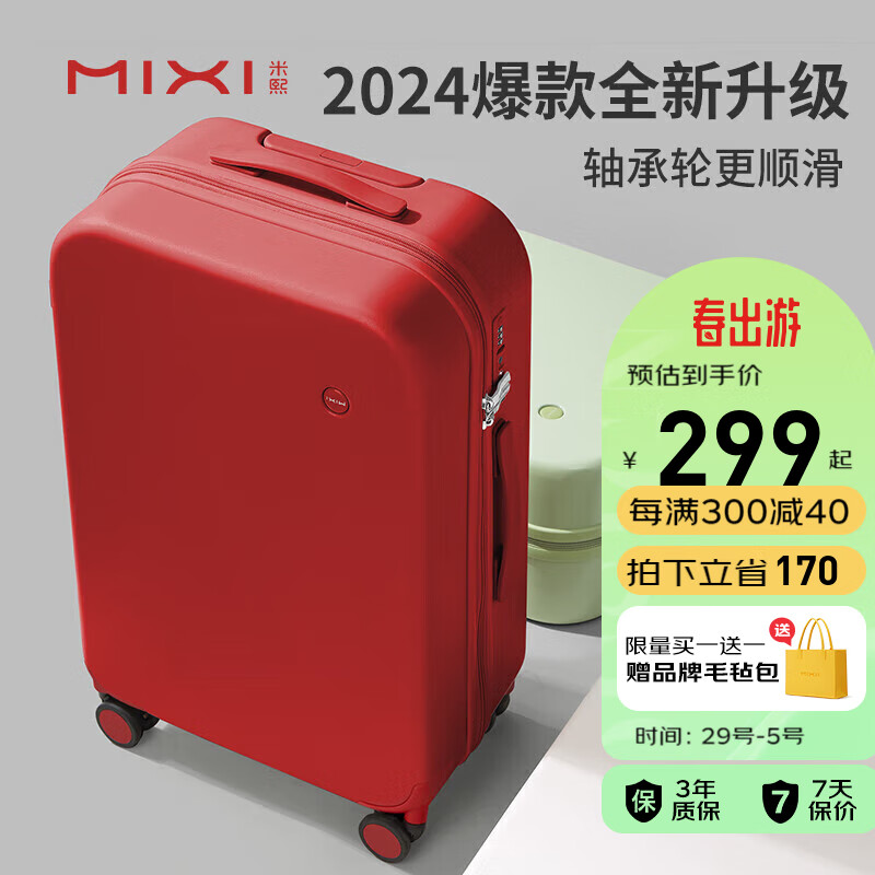 米熙红色拉杆箱子行李箱结婚登机箱男旅行箱包密码箱女20英寸高颜值36价格:469.00元!