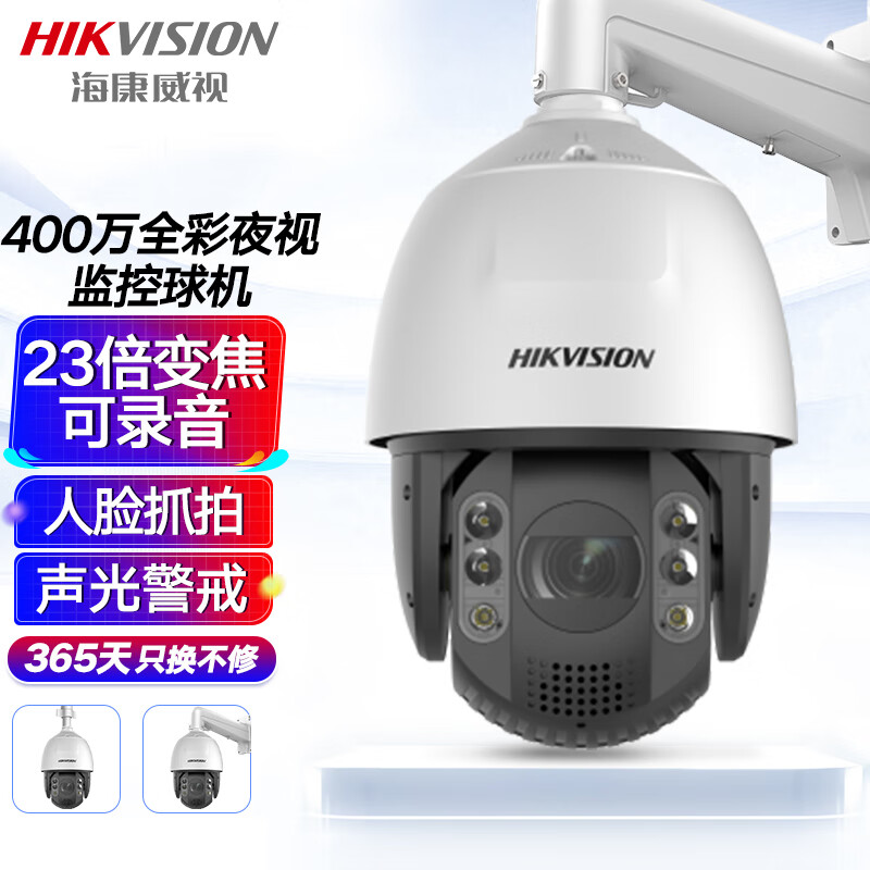 HIKVISION海康威视监控器摄像头400万2K高清全彩夜视室外防水声光警戒智能球机云台旋转摄像机7423MW-AB价格:3675.00元!