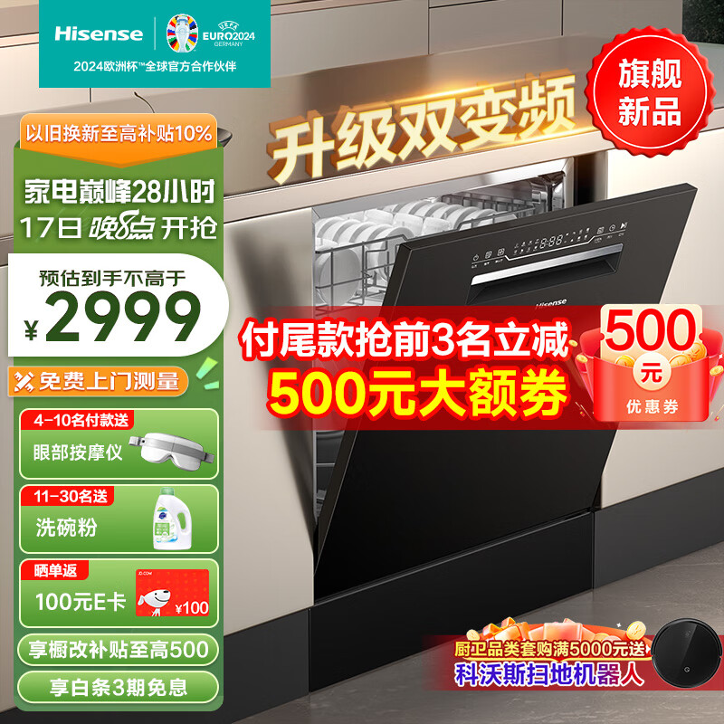 海信(Hisense)12套变频洗碗机 家用大容量灶下嵌入式 一级水效 分层洗168h储存独立热风C310Pro价格:2999.00元!