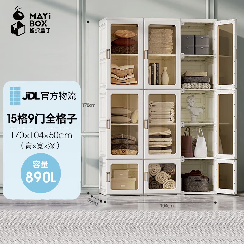 蚂蚁盒子(MAYIHEZI)免安装可折叠塑料简易衣柜子出租房衣服收纳防尘 15格9门全格子价格:769.00元!