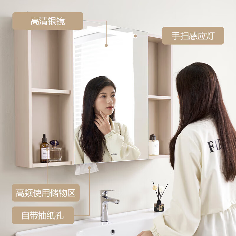 ANNWA浴室柜陶瓷一体盆智能镜洗脸盆柜组合卫生间洗漱台洗手盆1米价格:2549.00元!