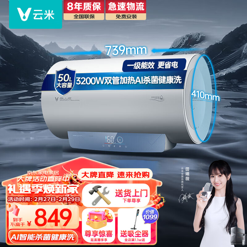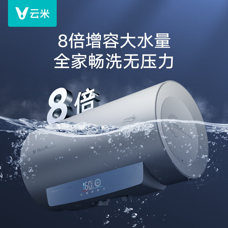 云米(VIOMI)电热水器50升小蓝调系列3200W速热水质可视化AI智能杀菌一级能效VEW5027【速热健康洗】价格:849.00元!