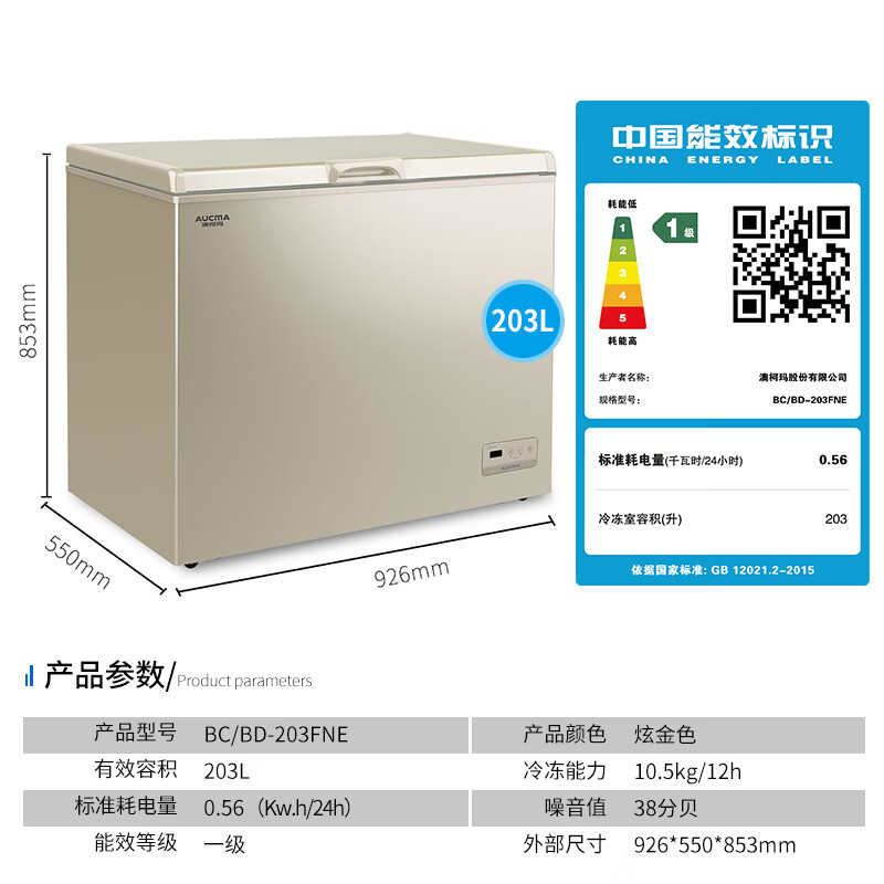 澳柯玛BC/BD-203FNE配置参数: