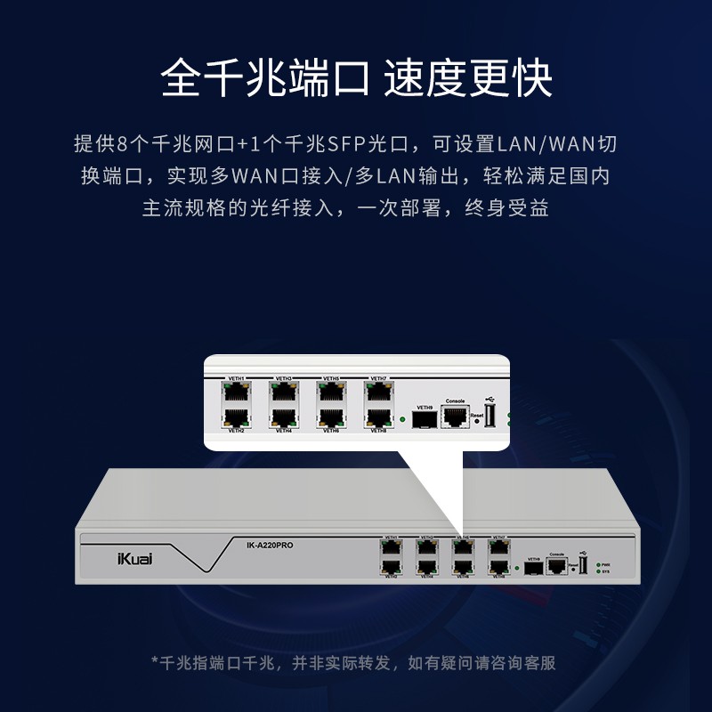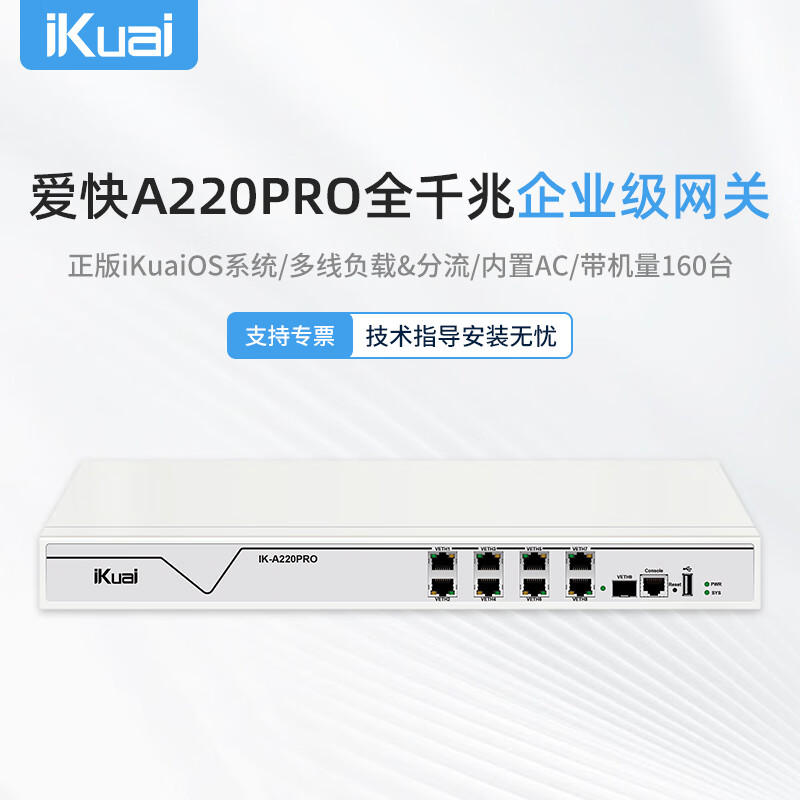 爱快(iKuai)8口千兆企业路由器 多WAN/多LAN口SFP口 一键认证/VPN/策略路由/日志审计 19英寸带机160台A220PRO价格:1499.00元!