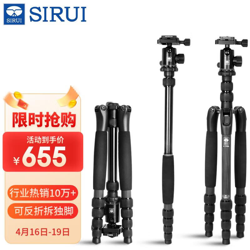 思锐(SIRUI)三脚架 E1205A+Y12 碳纤维含云台佳能尼康单反相机三角架 反折单反相机三脚架 可拆独脚架价格:735.00元!