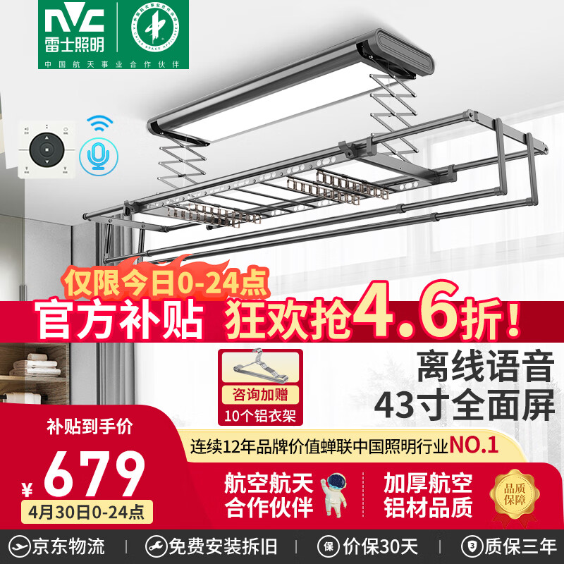 雷士(NVC)电动晾衣架 智能隐形隐藏式阳台晾衣机自动升降晾衣杆晒晾衣架价格:1499.00元!