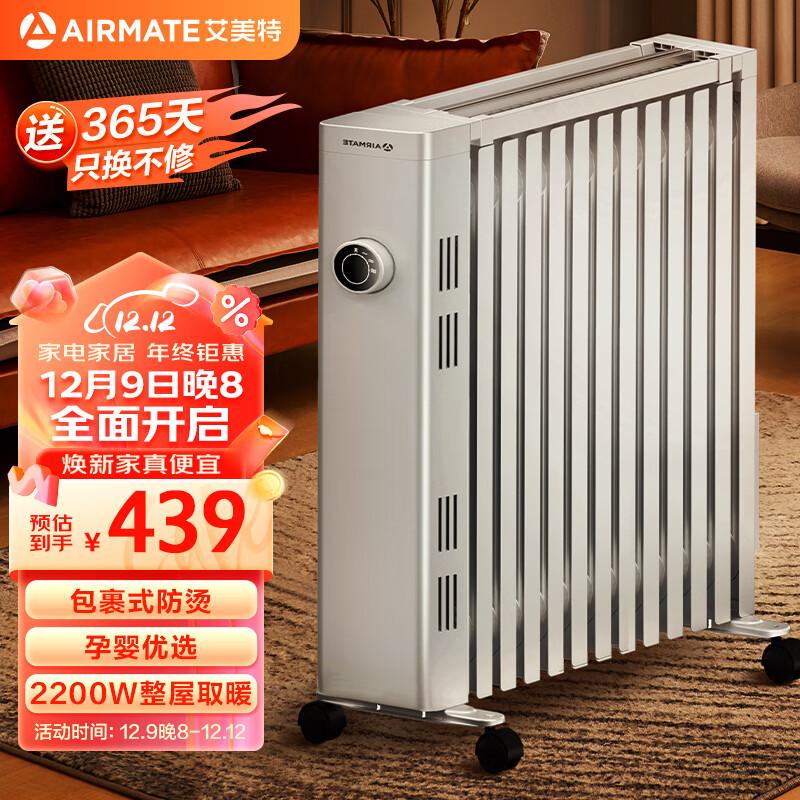 艾美特(AIRMATE)【孕婴防烫】取暖器/电热油汀/电暖器家用/电暖气片 13片加宽烤火炉加湿烘衣一体电热油汀 WU13-X5价格:489.00元!