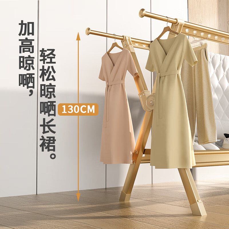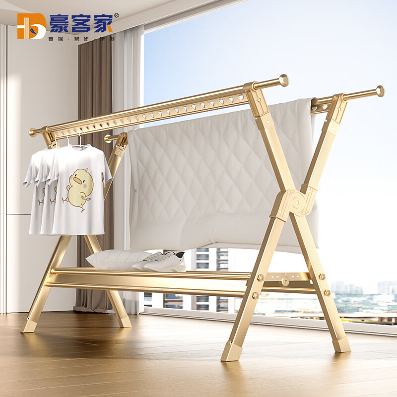 豪客家(HKG)晾衣架落地铝合金折叠伸缩室内阳台家用晒衣晒被子神器晾衣杆价格:368.00元!