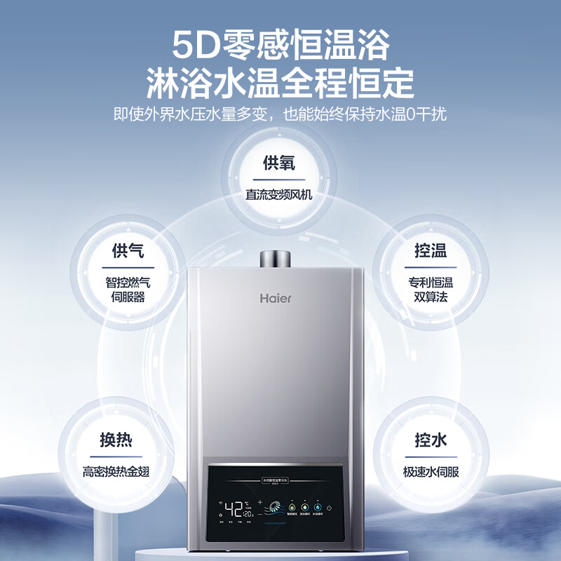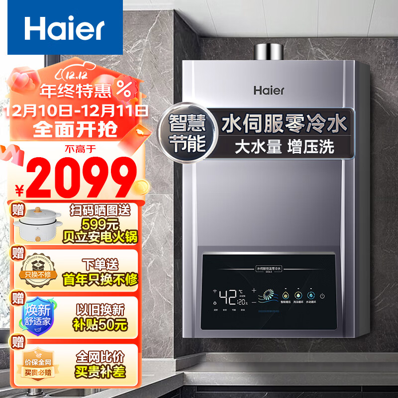 海尔(Haier)16升燃气热水器天然气极速水伺服恒温零冷水节能AI智能节能家用大水量增压洗 JSQ30-16IDOL5-PU1价格:2099.00元!