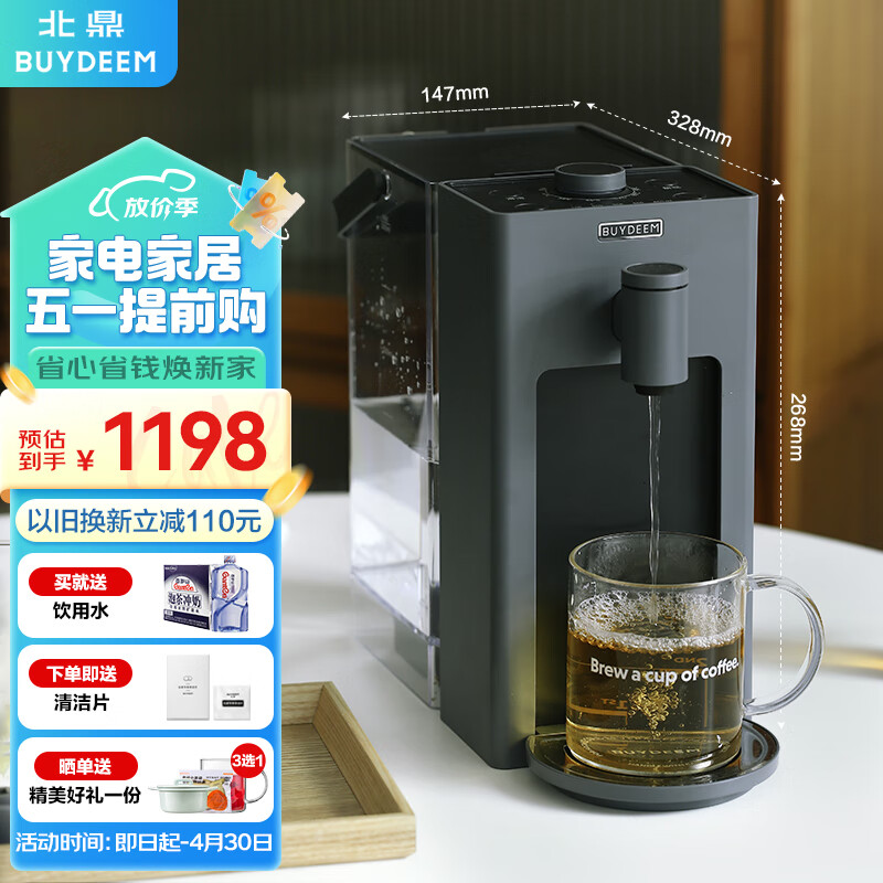 北鼎(Buydeem)台式饮水机办公室桌面即热式饮水机速热饮水机泡茶机智能饮水机一体机3L S902水墨灰 价格:1298.00元!