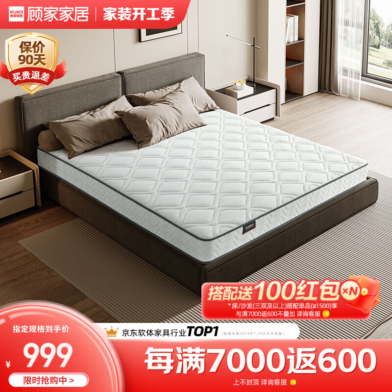 顾家家居(KUKA)抑菌硬垫精钢连锁簧席梦思弹簧床垫1.8*2米M0085A价格:999.00元!