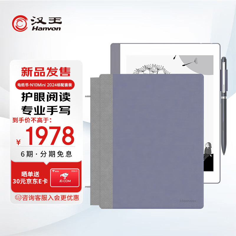 汉王(Hanvon)N10mini2024手写电纸本 7.8英寸电子书阅读器墨水屏电纸书平板智能办公本保护套.套装价格:1998.00元!