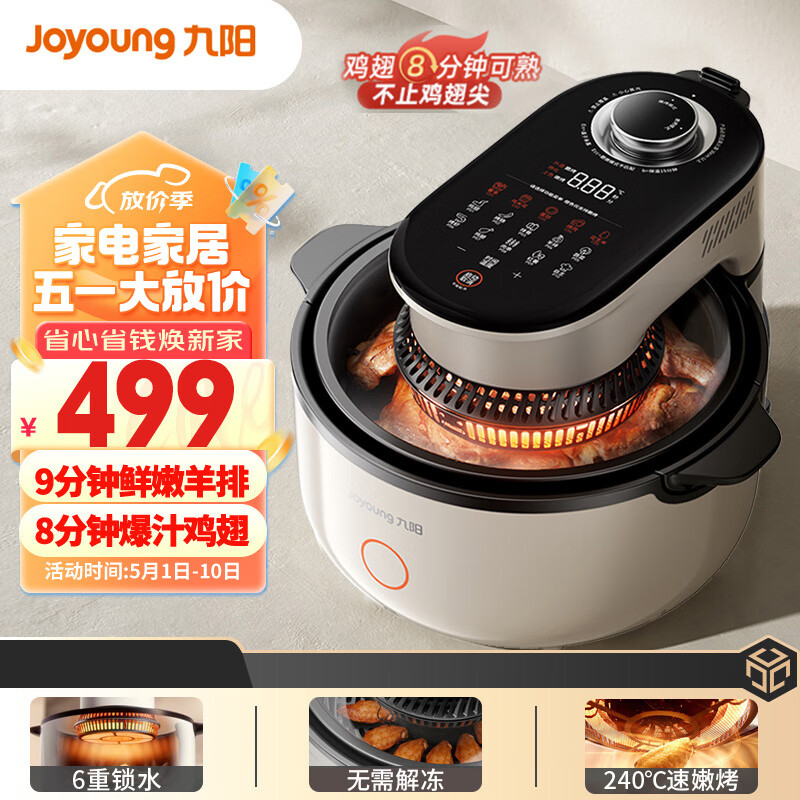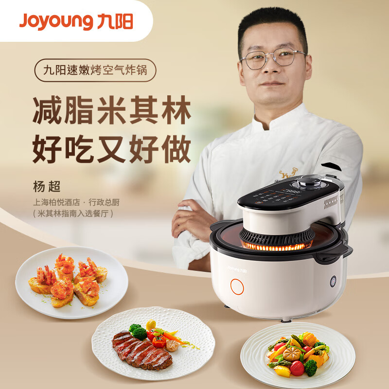 九阳(Joyoung)【米其林大厨推荐】速嫩烤空气炸锅 不用翻面 可视大容量5.5L智能无油嫩炸烤箱薯条机KL55-V1 Fast价格:499.00元!