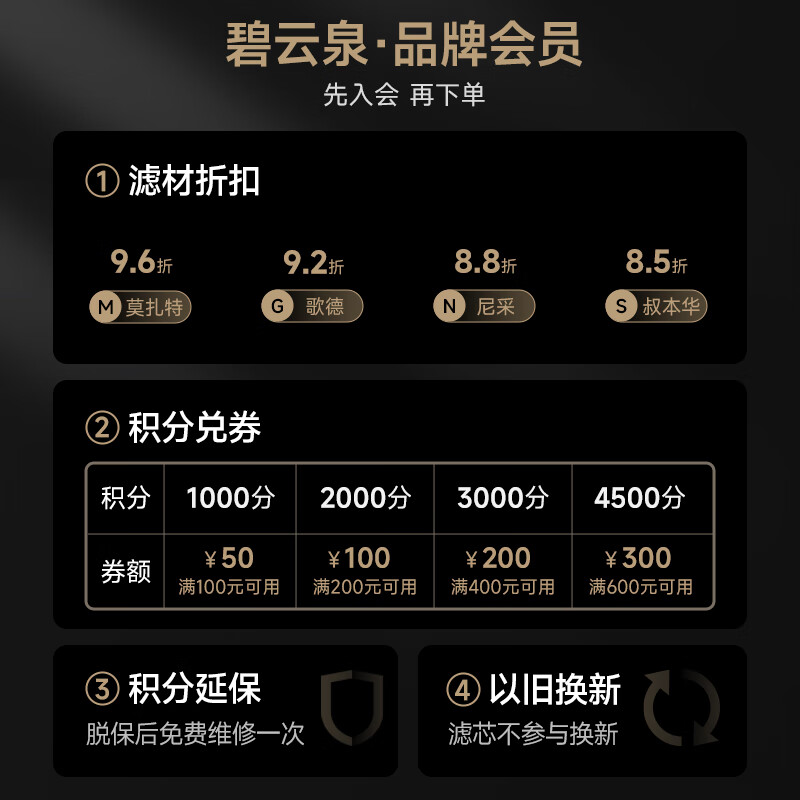 碧云泉N5/N7/N9系列官方净水器滤芯R702/702P/R601/R508原厂原装官方直发品牌原装 N5-R508:2级滤芯价格:500.00元!