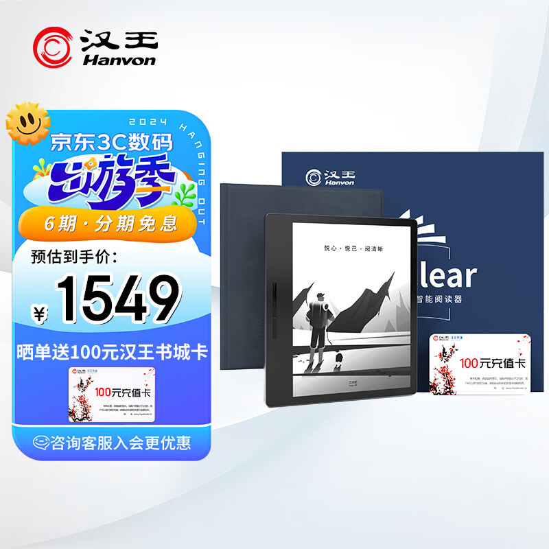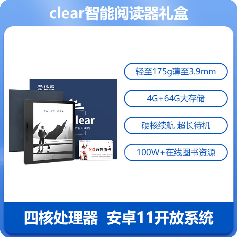 汉王(Hanvon)Clear 7英寸电子书阅读器礼盒版 墨水屏电纸书 看书学习便携阅读平板电子纸4+64版价格:1549.00元!