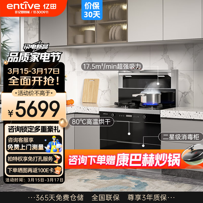 亿田集成灶 集成灶消毒柜一体 侧吸式 二消毒柜 J01X-S天然气价格:5699.00元!