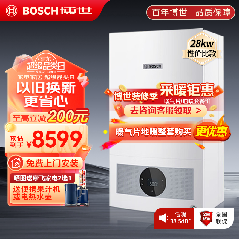 博世燃气壁挂炉 G5100WE 28KW暖气片/地暖恒温洗浴热水两用燃气炉热水器博乐系列 150-230㎡价格:8599.00元!