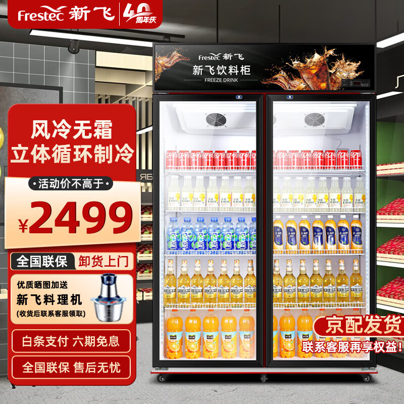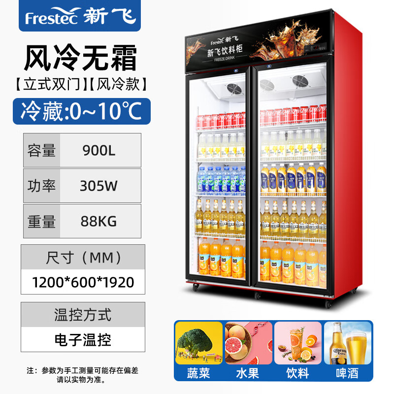 新飞(Frestec)900升双门冷藏冰箱风冷展示柜商用 超市饮料啤酒保鲜冷柜冷饮茶叶陈列柜LC-588WJH价格:2499.00元!