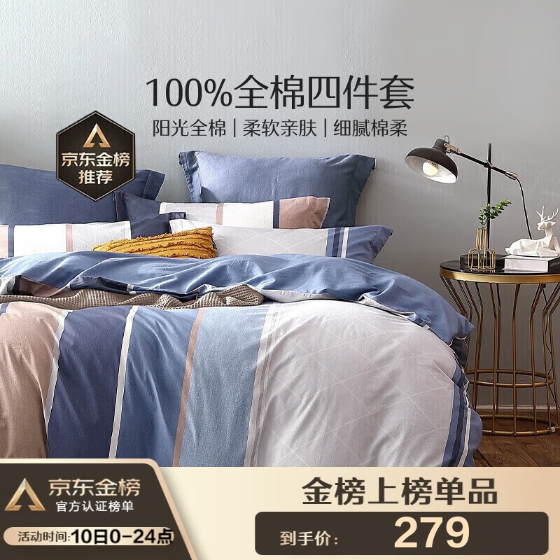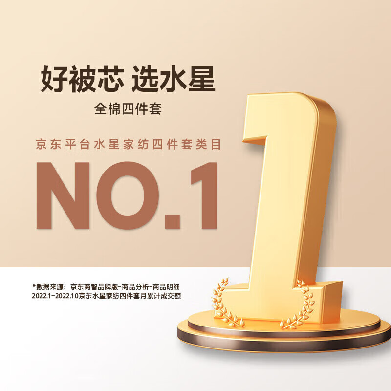 水星家纺纯棉床上四件套被套床单枕套现代简约风柔软套件1.8米床弗利安价格:409.00元!