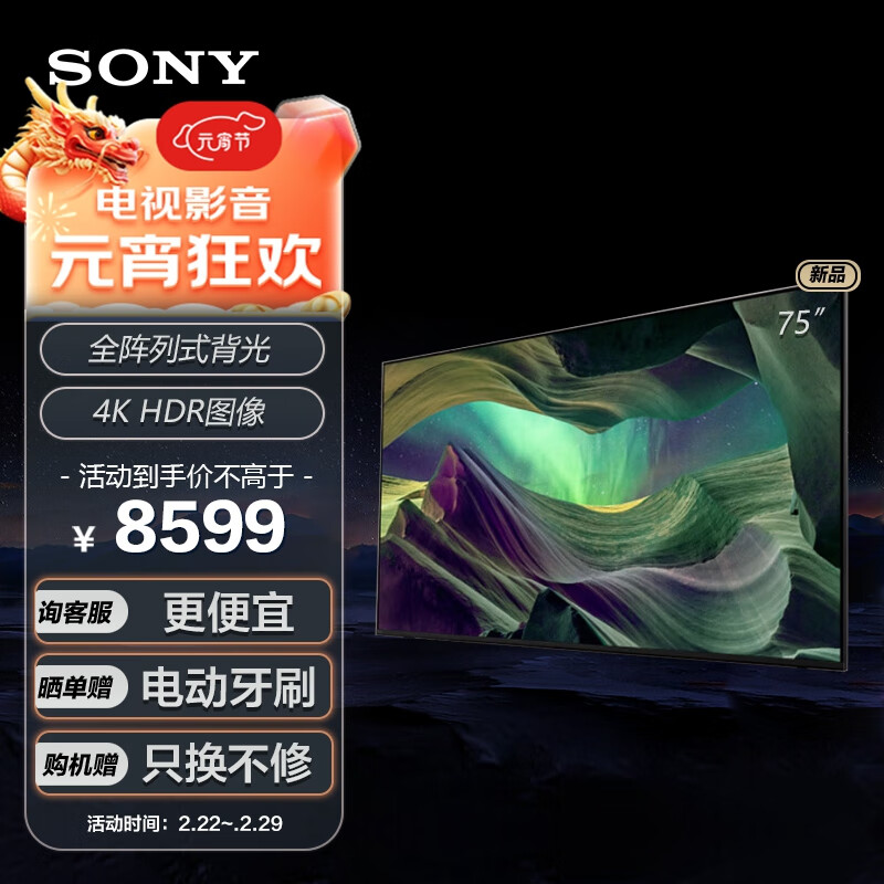 索尼(SONY)KD-75X85L 75英寸 全阵列式背光 4K 120Hz 屏设计价格:8599.00元!