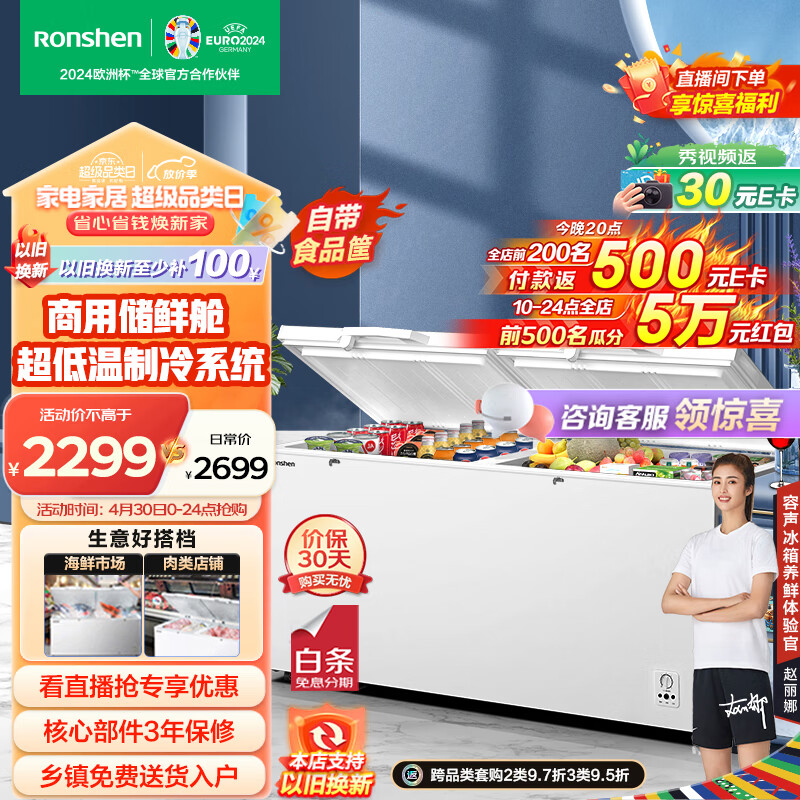 容声(Ronshen) 506升大容量冰柜商用冷藏冷冻转换单温冷柜 商用厨房雪糕卧式冷冻柜BD/BC-506ZMMA价格:2339.00元!