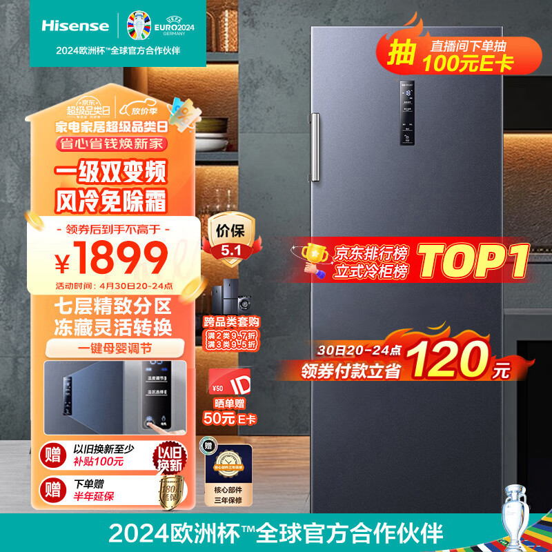 海信(Hisense)240升立式冰柜 变频一级能效风冷无霜冷柜 母婴母乳冷藏冷冻抽屉式单门冰箱BD-240WPVUT价格:2399.00元!