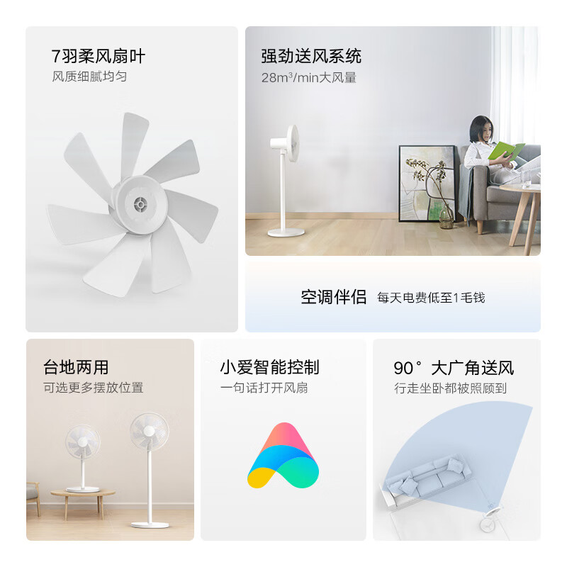 米家 小米电风扇 落地扇家用 7羽叶轻音大广角大风量远风距 台地两用 远程智能控制 AI语音价格:199.00元!