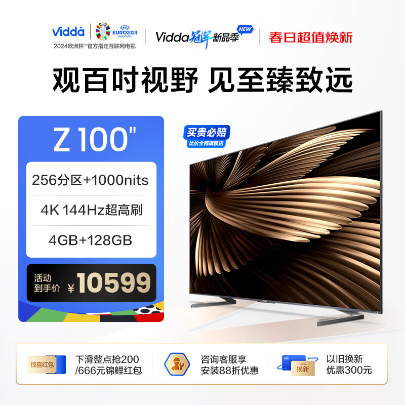 Vidda Z100 海信 100英寸电视 4+128G 256分区 1000nit 144Hz 游戏智能液晶巨幕电视以旧换新100V7K价格:10999.00元!