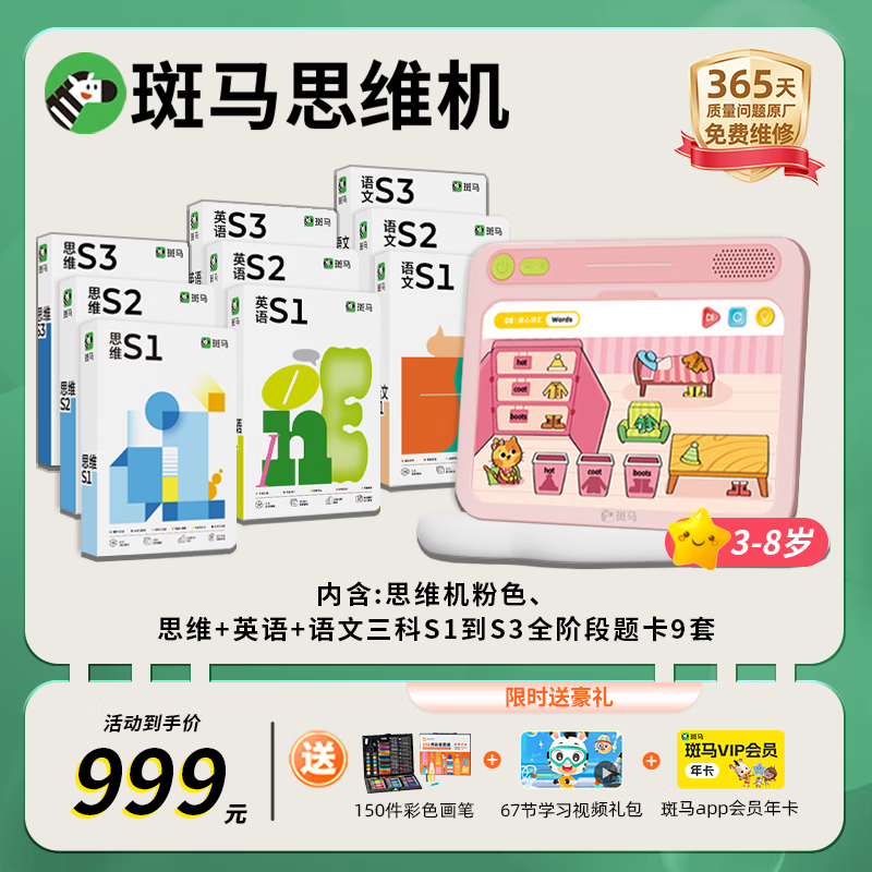斑马思维机 语数英S1-S3 点读学习早教机 3-8岁儿童玩具生日礼物粉色价格:1119.00元!