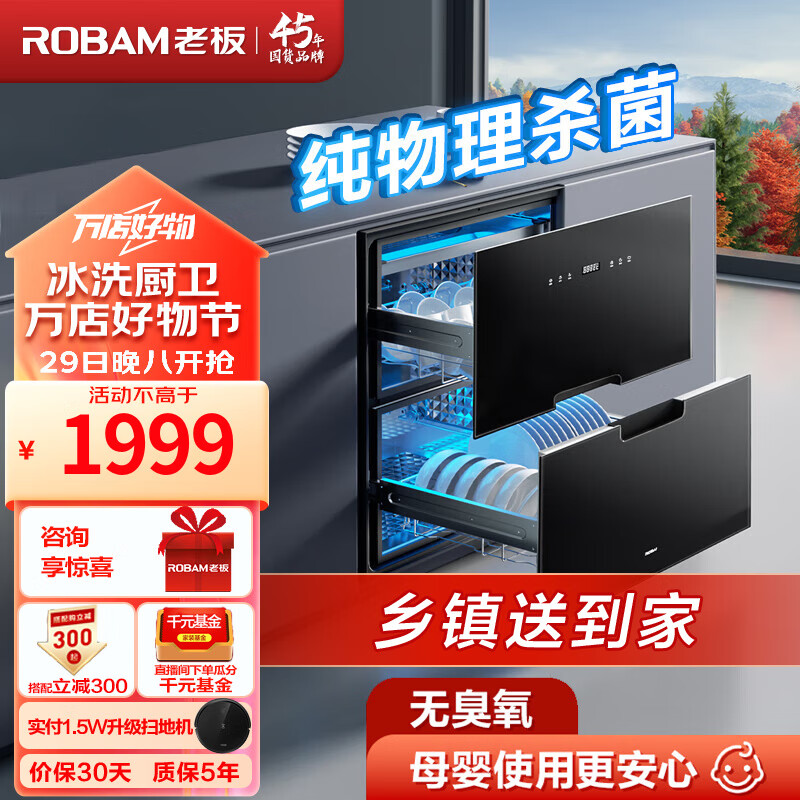 老板(Robam)消毒柜家用 嵌入式 消毒碗柜XB710A 双门三抽105L大容量无臭氧二紫外线纯物理杀菌消毒柜 二 105L价格:1728.00元!