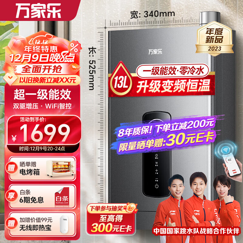 万家乐(Macro)RLU3增压零冷水燃气热水器一级能效节能30%冷凝式智能防冻WIFI智控变频恒温天然气 一级节能零冷水JSLQ22-13RLU3价格:1899.00元!