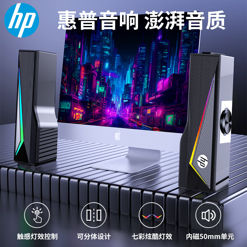 惠普(HP)DHE-6005 音响 迷你长条小音箱多媒体笔记本电脑桌面有线台式机低音炮游戏电竞炫彩灯光送礼礼物价格:129.00元!