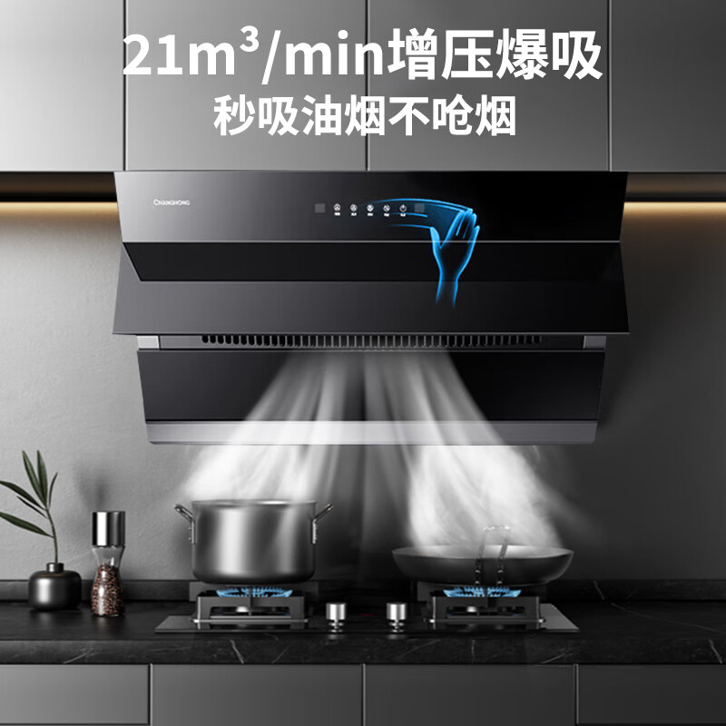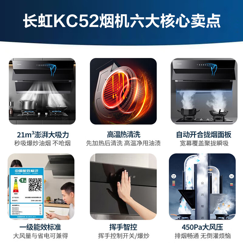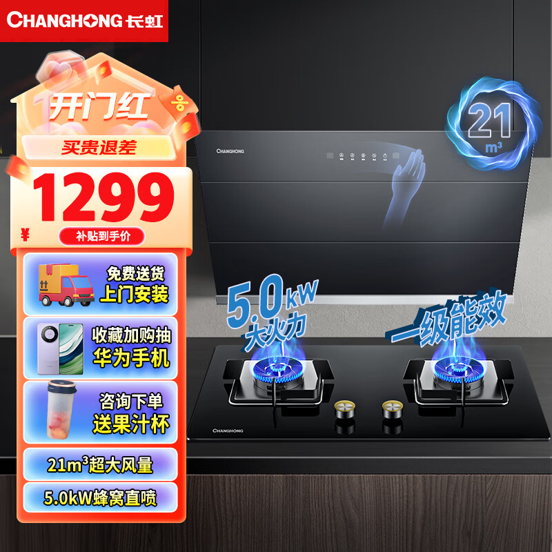 长虹(CHANGHONG)油烟机 侧吸烟灶套装家用 21爆炒大吸力 体感控制 钢化玻璃自清洗 5.0kw灶具 KC52+CC35天然气套装价格:1299.00元!